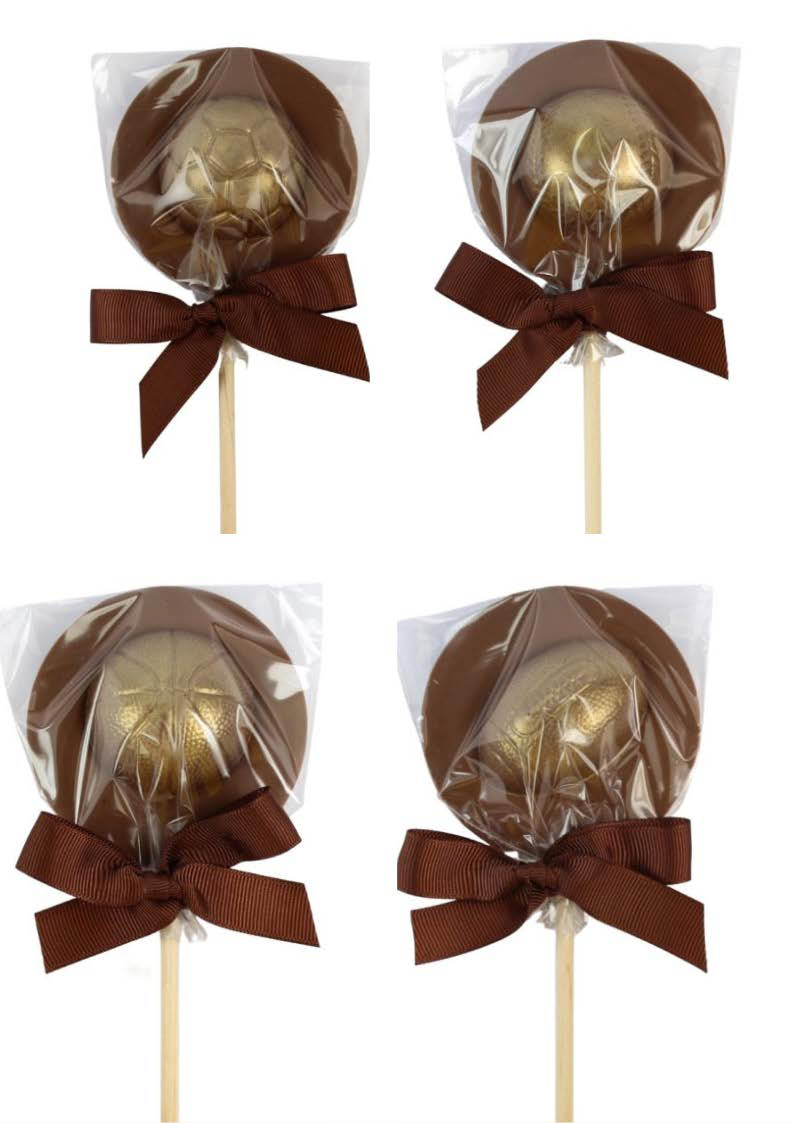 Chocolate Lollipop Measures 7 x 7 cm 17.5cm from top to bottom of the stick.